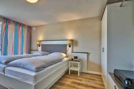 Beide Schlafzimmer bieten ein komfortables Rahmenbett mit orthopädischer 7-Zonen-Matratze, die einen erholsamen Schlaf gewährleistet.