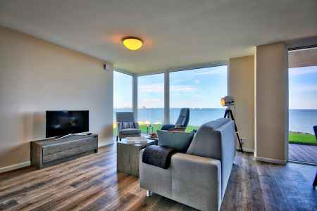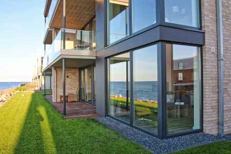 Ein weiteres Highlight bildet die grosse Terrasse, die direkt an die Uferböschung der Ostsee liegt: komplett ausgestattet mit Lounge-Möbeln zum Relaxen.