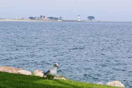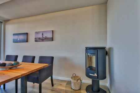Im offenen Wohn-Esszimmer wird der Blick immer auf die Ostsee gelenkt – die vorbeifahrenden Segelboote, die Möwen und Blesshühner harren vor der Uferböschung aus und im Wind wehende Schilfgräser umrahmen das Naturschutzgebiet. Im Wohnzimmer finden Sie einen 40-Zoll-Fernseher, natürlich mit Satellitenempfang.